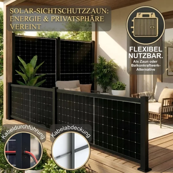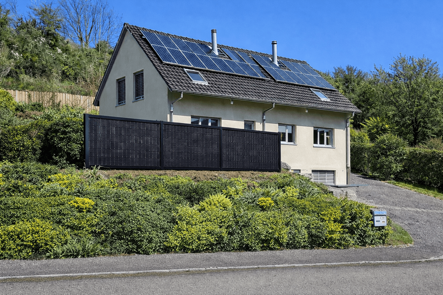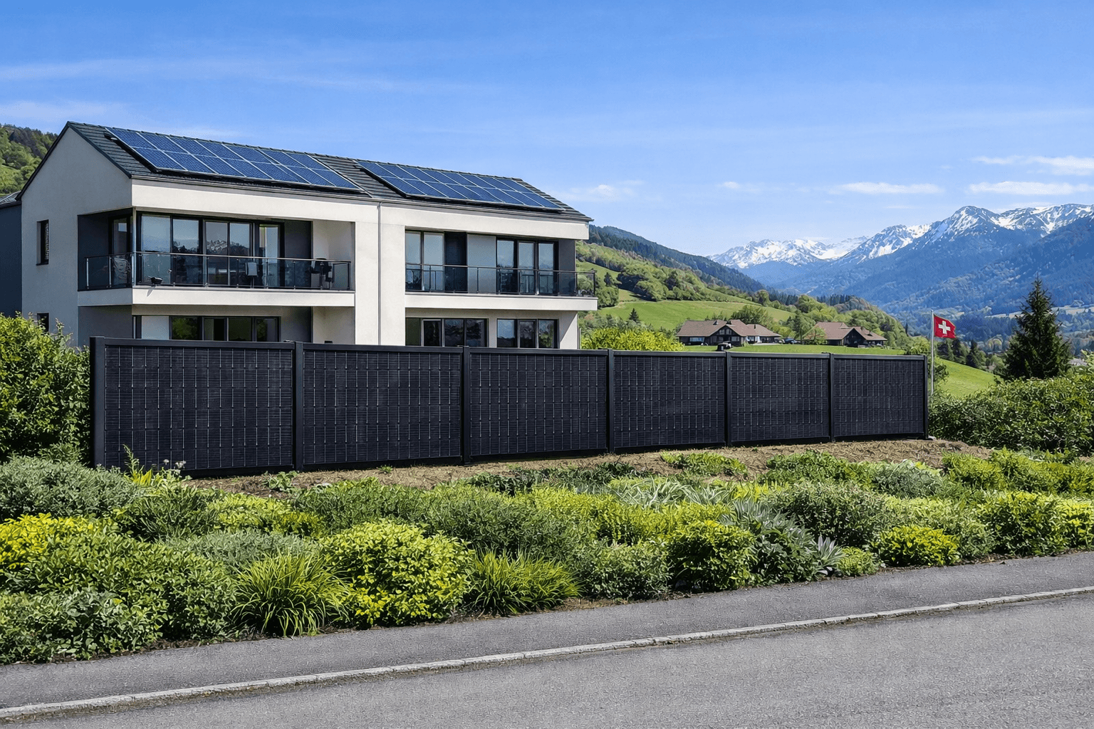 - Kombination aus Zaun + Solaranlage spart Platz und Material