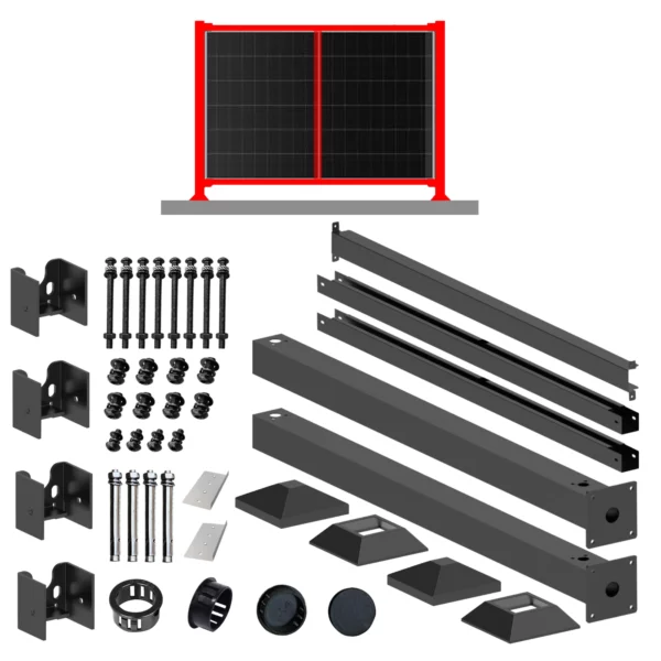 Solarzaun 8-Modul-Variante mit 8 bifazialen 420-W-Solarmodulen und Wechselrichter und 4-kWh-Speicher
