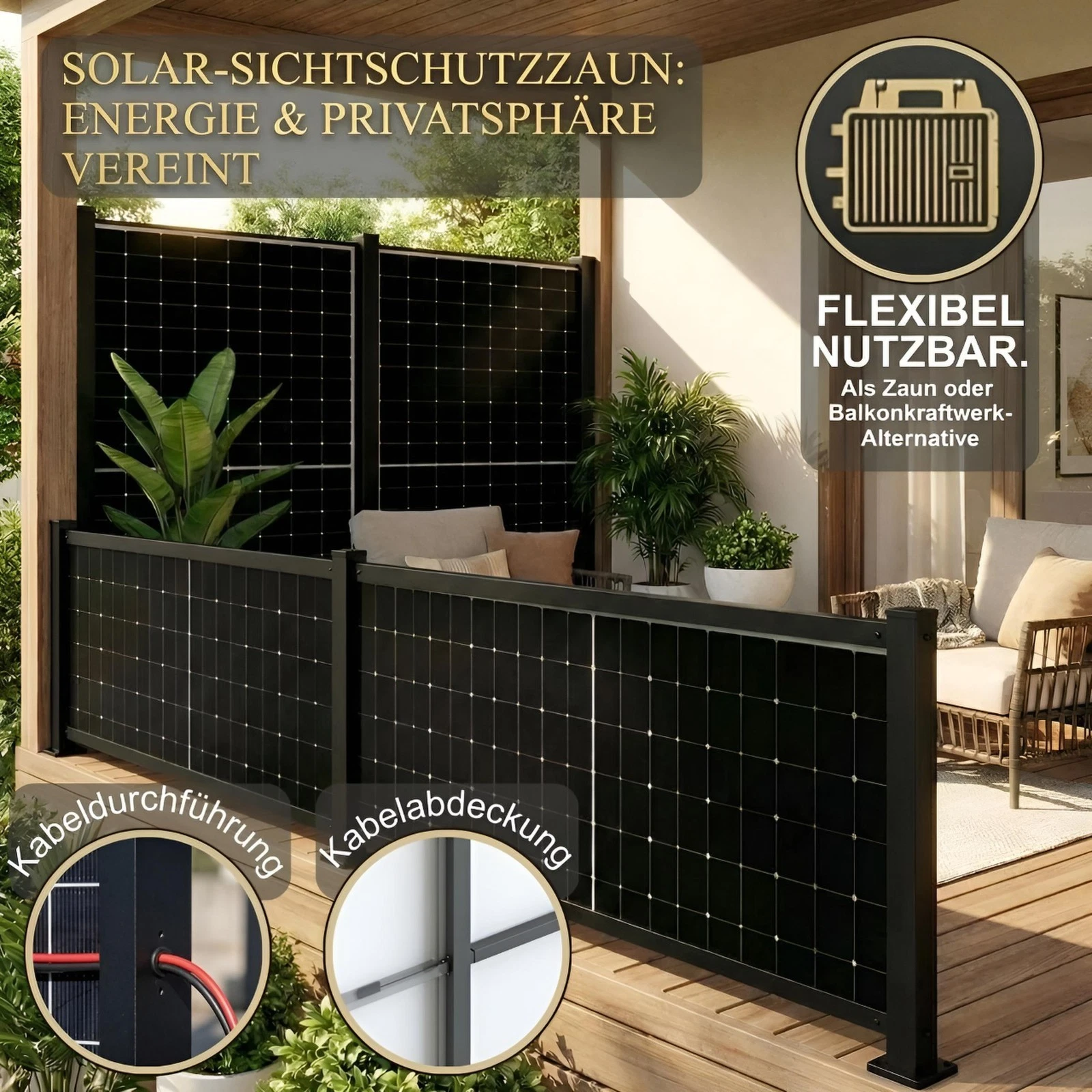 Der Solarzaun verbindet modernes Zaun-Design mit hocheffizienter Stromerzeugung. Statt ungenutzter Fläche entsteht eine langlebige, elegante Energiequelle – direkt an Grundstücksgrenzen, Gärten oder Terrassen. Dank bifazialer 420-W-Hochleistungs-Solarmodule wird nicht nur die Vorderseite, sondern auch reflektiertes Licht von hinten zur Stromproduktion genutzt.